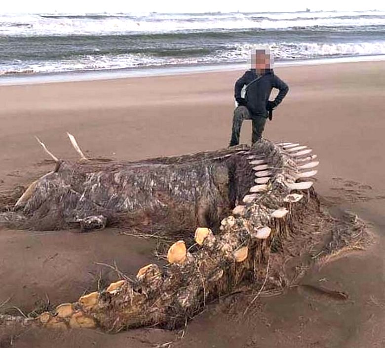 Ponekad se pojavljuju ostaci nekih fantastičnih stvorenja plaže kao rezultat jakih oluja ili morskih struja. Pa u 2018. godine ocean je izbacio nekoliko čudnih morskih životinja, koje niko od stručnjaka nije mogao prepoznati. U maju te godine, na primjer, stanovnici grada East Mindoro na Filipinima bio svjedokom prisutnosti ogromne morske obale sivo-bijelo čudovište prekriveno dlakom. Tijelo mu je bilo gotovo 6 metara i dugačak je više od 1800 kilograma. Kažu stručnjaci da će dati “gloster” (termin koji je nekada značio neidentificirana stvorenja s kosom i kostima) vjerovatno je bila kita, samo vrijeme, morske struje i grabežljive životinje, recimo, morski psi, deformirao. Ali ovo objašnjenje ne uvjerava one koji vjeruju da su nam takvi globusi nepoznati pretpovijesni marinci stvorenja.