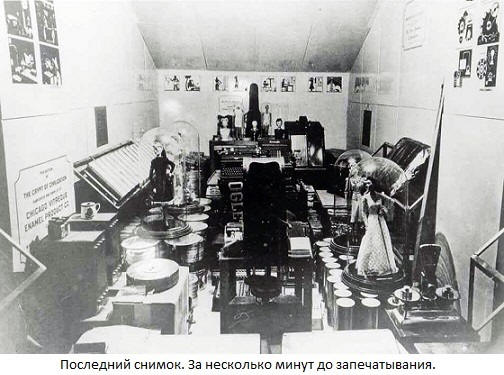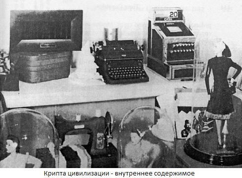 U međuvremenu, naučnici su s poštovanjem ispirali prašinu sa objekata naizgled neprimjetan: stolice, jastuci, stolice, rukavice. Lukovi, bičevi, modeli brodica, košare s voćem, igre – svi ti predmeti od kamena, alabastera, gline, drveta nisu bili ništa manji vrijedna od zlatnog blaga jer su pružali neprocjenjivo informacije o životu, običajima i svakodnevnom životu drevnog Egipta. To je podstaklo predsednika Univerziteta Allthorpe Thornwell Jakova da sakupi kolekciju predmeta XX veka i pošalje je buduće generacije. Projekt je nazvan “Kripta civilizacije”. In 1937. Jacobs trijumfalno najavljuje lansiranje na NBS Radio projekat. Gotovo tri godine je bilo uključeno u izbor predmeta Bila je duga rasprava. Nacrtano je umjetničko djelo prvo nabrojite. I šta je tu ostalo? Sadržaj Kripte civilizacije Više od 800 knjiga: Biblija, Kur’an, djela Homer i Alighieri i drugi svjetski klasici, radi na historiji, enciklopedije, naučni radovi. Knjige napisane na celuloznom acetatu film. Naučni i tehnički instrumenti, arhiviranje novina. Izbor fonografske snimke: glasovi Josepha Stalina, Franklina Roosevelt, Adolf Hitler, Mussolini, muzičke kompozicije. Filmovi, projektor i čitač mikrofilmovi.
