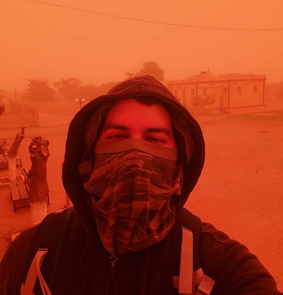 Ovo je vrlo ozbiljan slučaj za Krit, takav ovdje nikad nije bilo, ja se lično ne sjećam takve “apokalipse”. Samo mislite, koncentracija čestica u zraku sada premašuje norma je devedeset puta, to na Kreti nije zabilježeno ni jednom. Razlog za oluju bio je visoki pritisak, zbog čega je krenulo kretanje zraka s obale Afrike, i zato tople zračne mase donijeli su ovu strašnu crvenu prašinu na ostrvo.