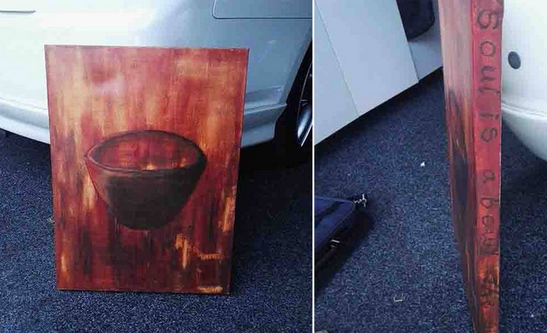Početna cijena platna postavljena je na svega 40 dolara. In tokom mjeseca, dok je slika visjela na portalu do posljednjeg dana licitiranje (19. januara ove godine), s vlasnikom se dopisivalo gotovo dvjesto ljudi koje zanima mistično djelo umjetnost. Među odgovorima čovjeka na razna pitanja koja su zanimljiva potencijalnih kupaca, nekoliko ih je: u antičkim prodavnica u kojoj je platno kupljeno, umjetnik koji je to stvorio “remek-djelo”, zvano Jill; dok je slika bila unutra garaža, u kući se nije dogodilo ništa mistično; na slici sa strane na engleskom je napisano “soul is the cup”, a u međuvremenu kontejner za dušu (čašicu) ljudsko tijelo se samo smatra: gore na kraju napisao “oblik mog”, koji dodaje misteriju još više na ovo platno. Ko je bila ta mitska umjetnica Jill i zašto to palo je na pamet stvoriti tako tajanstveno remek-djelo, ostaje misterija sedam pečata …