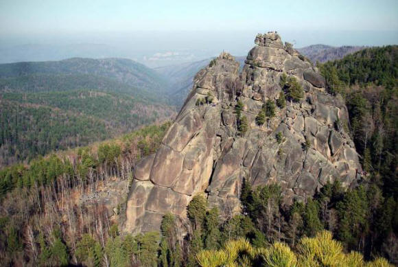 Fotografija s otvorenih izvora Lovac je noću vidio da je Kureng oči razvaljene, vide se samo vjeverice. Zatim je izašao iz govornice, stavio na skije i dao naredbu “yuk”. Skije su se vozile kroz tajgu. Kureng probudio se i nije našao ni lovca, ni njegovih skija. Obukao je skije lovac, ali bez obzira na zvižduk, skije se nisu kretale. Naši živi lovac na skijanje brzo se vratio kući. Ali on Zaboravio sam pitati kureng – kako zaustaviti skije. Već vozi pored svog aala i ne uspijevajući zaustaviti skije, lovac izvukao nož i gurnuo u skije podložene lokom. Oni zaustavio se, a krv je curila iz posjekotina. Žive skije su mrtve izgubivši krv. Ako je lovac otkrio iz kurenga kako se zaustaviti skijanje, tada bi u našim rukama bila oprema uživo (prijevoz uživo). Kurengsi sada nisu u tajgi, jer su bili zidani u planinama Sayan Vrhovni tvorac. Sada se pamte u Hongorai. prženje cvijeća, čija je crvena boja ista kao i boja očiju kurengsa. Na stenama Khakasa nalaze se brojne slike lovaca čudesno skijanje. Vjeruje se da ako imate ruku u ovome imidžom, dobit ćete nevjerovatnu snagu i izdržljivost. Krasnojarski stubovi Sami izvor ogromnih stijena bizarni oblik, dolazi iz sredine tajge, – zagonetka. Naučna verzija: stubovi – sienitne stijene koje su se pojavile sa zemlje pre milione godina. A onda – vetar, sneg, kiša, seizmičke pojave su im dale sličnost s ljudima, životinjama, ptice. Odatle i imena – deda, baka, supa, gavran, zlatni orao, Deva Drevne legende na svoj način objašnjavaju pojavu stupova. By jedan od njih, prijeteći kralj Jenisej, ljut na nije poslušao njegove kćeri i njihove voljene, okrenuo je Bazaiha i Laletina ulazi u rijeke, a njihovi grobovi-prinčevi zajedno s cijelim odredom stijene. Postoji, navodno, i verzija nekog drevnog grada mrtvih postojala na tim mjestima. I to je poput stubova – bilo da su njegove ruševine, ili da li stanovnici grada mrtvih čekaju u krilima i pobunjen sa zemlje.