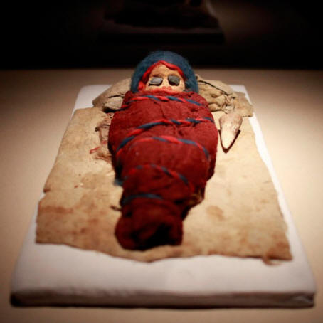 Šta je posebno od mame Cherchen? Prije svega, svi su Kavkazoidi visoki ne manje od 180 cm, ne zna se kako su završili ova mjesta. Ovo je “češki muškarac”, tri žene i leži jastuk bijele ovce u koju je umotana tromjesečna beba umotana sitno smeđa materija i vezana crvenom i plavom bojom kablovi Dijete je zatrpano bocom kravljeg roga i vjerovatno s najstarijim u historiji pacovac napravljen od ovaca vimena; djetetove oči su plavo kamenje. Čovekova čeljust uredna svezana, tako da izgleda sasvim normalno, podvezica na istoj ženske glave su oslabile, a njihova lica postala su „pjevačica“ ili vrišteći. Muškarac se odmara u pozi čovjeka koji spava u visećem položaju, stoga – uzimajući u obzir sigurnost tijela – posjetitelji muzeja nehotice razgovaraju šapatom, kao da se boje probuditi spavaćeg čovjeka.