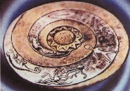 Još jedna pržena senzacija kineske arheologije – “svemirski diskovi” od jaspisa (drugi naziv za ovaj kamen je žad), pronađena u Tibetu. 1978. godine objavio je neko David Agamon knjizi “Solarni bogovi u egzilu”, citirajući njegove bilješke nedavno preminuo profesor oksfordskog šefa karila Robin-Evans, koji je govorio o ekspediciji 1947. godine na Tibet, gdje je putovao planinama Bayan Khar-a i naišao na misteriozni narod ispod naziv kapi (ili bure). Navodno je došao od stranaca, olupina na Zemlji, o čemu svedoče fotografije od tih sićušnih ljudi, njihovog “kralja” i “kraljice” i svetog kameni diskovi sa slikama planeta i izvanzemaljskim porukama.