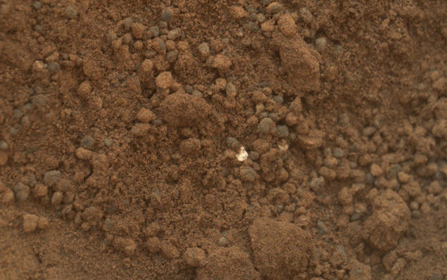 Dok analizator vrši analizu, NASA-ini stručnjaci još uvijek pretražuju jedan “žohar” uhvaćen u kadru. Vrlo je mali – malo više od milimetra. Ali ono se izdvaja iz opće pozadine. Gizmo blista blistavo kao zlatni nug. To je metal ili mineral, ne zna se. Stručnjaci ne iznose hipoteze. Samo to sugeriram „nugget“ je vjerovatno lokalni. Ležite na plitkoj dubini. I pojavio se na površini jer ga je robot iskopao kad ga je skupio merica po drugi put.
