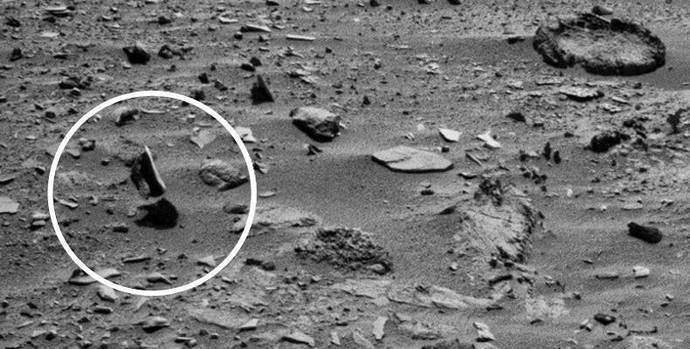 Vrijedi napomenuti da Mars predstavlja mnogo misterioznije mesto nego što mnogi od nas misle. Osoba vjerovatno ne zna i milijardu onoga što se događa na Crvenoj planeti, međutim ponekad je pokriće tajne proždrljivo zahvaljujući kosmičkim tehnologija. Dakle, krajem aprila ove godine istraživanje NASA-ina laboratorija Opportunity fotografirala se na dalekoj planeti životinja koja se kreće na četiri noge, a krajem maja rover “Radoznalost” je slikala kamenu figuricu na Marsu, ili sićušno humanoidno stvorenje.
