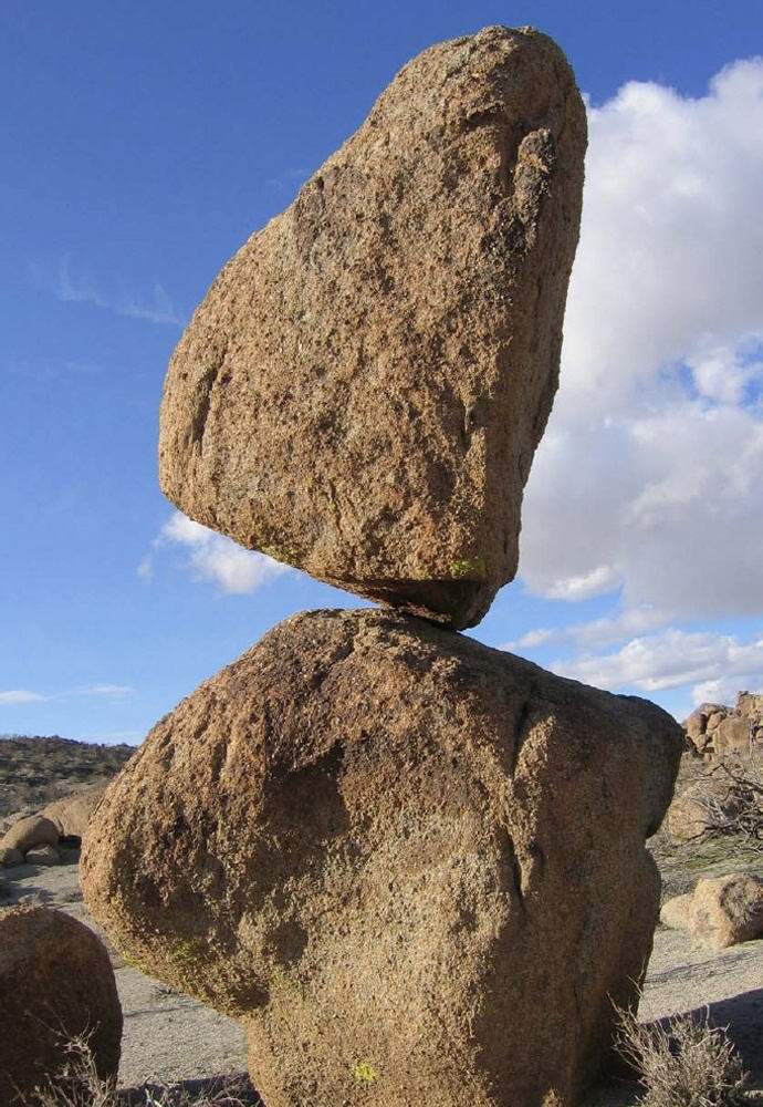 Grant napominje da kamenje drži akrobatsku ravnotežu mogu se naći širom svijeta, a nema ništa iznenađujuće. Meteorološke i geološke sile uništavaju i operu stijenu oko njih, jer zauzimaju džinovski blokovi neobičan položaj, balansiranje na tlu ili drugom kamenju. Ne manje, čak i najmanji potres prolazi lako ovi prirodni spomenici. Iz tog razloga, na mestima sa bilo kojim seizmička aktivnost nikada ne uravnotežuje kamenje upoznati. Međutim nad San andreama gdje su snažni zemljotresi koliko god kiša bila tema, kaldrme i dalje stoje ništa se nije dogodilo, jednostavno zanemarim zakone prirode.