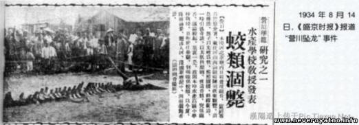 U posljednje vrijeme često nailazim na poruke o relikvijska stvorenja koja su navodno preživjela do danas. Tako u Kini u Pokrajina Liaoning održava restauraciju skeleta zmaja pronađenog u 1934. na ušću rijeke, 20 kilometara od grada Yingkou.
