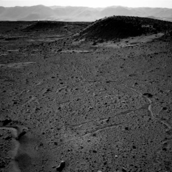 Snimka NASA-e, 2. aprila, objektiv lijeve navigacijske kamere: postoji svetlo. Nema slike s pravim objektivom.