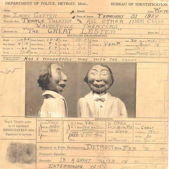 1924. godine u Detroitu se desio neviđeni incident. In predstava Velikog Leicestera i Franka Byrona Jr. potonji je publici ispričao smiješnu šalu da su tri starije žene su od smijeha odjednom umrle. Naravno, koncert je bio prekinuti, i ljekari su stigli s policijom. Čuvari pravna država nije našla ništa bolje nego napraviti osumnjičenog dogodilo lutka. Frank Byron Jr. Uhapšen je zajedno s njim misterioznu igračku i dostavljena na lokaciju.