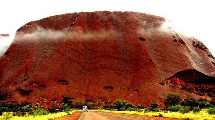 Mount Chameleon mijenja boju više puta dnevno zavisno od toga kako ga sunce obasjava. Uluru (Ayers Rock) nastala pre oko 680 miliona godina. Zapravo, možete reći da je to jedan džinovski kamen, dužina koja je široka 3,6 kilometara – 3 kilometra, a visina – 348 metara. Iznad planine podsjeća na slona koji leži na njegovoj strani.