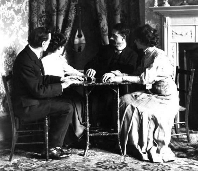Mi smo, piše on, okupili se u Aksakovu u osam uveče, sjeli okrugli sto na jednoj nozi i stavite ruke na njega. Uskoro bilo je spiritualističkih udaraca, nije bilo udaranje nogom stola o pod, koračao je kao iz same šume stola. Od St. Claira tada se bojao da će je možda sumnjati da oponaša ove udarce pozvali su nas da sami prikažemo zvukove – bilo koji. Počeo sam grebati po stolu željeznim ključem – nakon trenutka čuo sam istu grebanje zvuk. Bilo je nemoguće ponoviti, pogotovo nogama (rukama) St. Clair je ležao na stolu), uređaji za snimanje tada nisu bio.