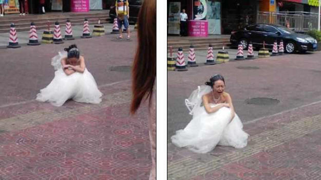Fotografije iz otvorenih izvora Kada je odbila, mladoženja je uzela nesmotrenog izraza lica i besa je otkidao i bacio naočale na zemlju. Zatim se okrenuo i otišao, neumorno ostavljajući plač mladenka na ulici.