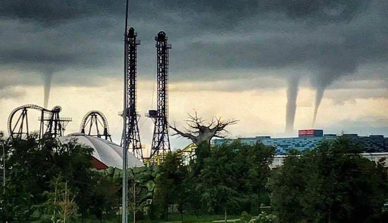 U Sočiju je veoma jako vrijeme. Preko mora Prema službenim podacima, međutim, formirano je najmanje 9 tornada očevici tvrde da im se tada pridružilo još 8 atmosferski vrtlozi. Lokalne vlasti najavile su hitnu oluju upozorenje tražeći stanovnike i posjetioce da se pokažu oprez. Obilne kiše praćene grmljavinom, vjetrovi jačine do 25 metara u sekundi, velika tuča i protok otpada.