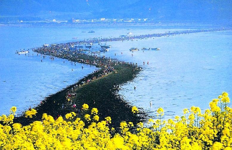 Dva puta godišnje može se promatrati blizu južnokorejskog ostrva Jindo jedinstveni prirodni fenomen koji podsjeća na starozavjetnu priču kako su se razdvojile morske vode pred Mojsijem i sinovima Izraelovim. Na sat vremena Žuto more se razdvaja između ostrva Džindo i Modo, otvaranje puta u dužini od 2,8 kilometara i širini od 40-60 metara. Je događa se posljednjeg dana februara, a takođe i polovinom juna.