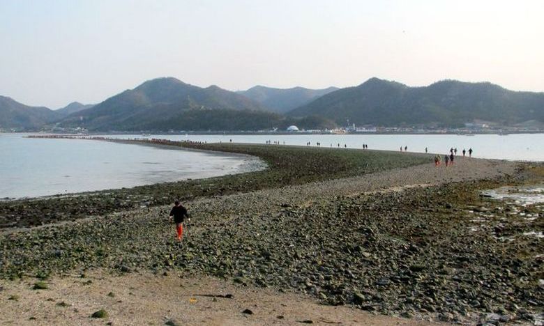 Prema naučnicima, “odvajanje mora” zbog razlike u plimi i plimi plima i oseka, a njeno vršno vrijeme ovisi o mjesečevim ciklusima. Nije iznenađujuće da se mnogi turisti slijevaju u Republiku Koreja da se uvjerite u ovo čudo. Na sat vremena turisti i lokalno stanovništvo šetaju izloženom zemljom, skupljajući se „Mojsijev put“ razne morske delicije.