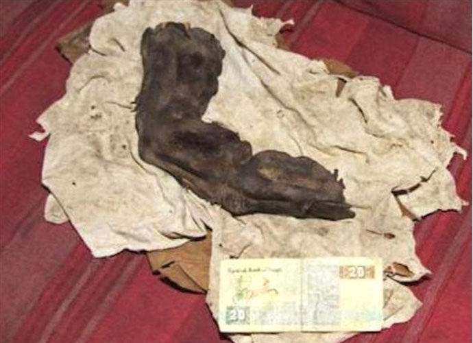 Novinari pišu da je u Egiptu otkriven fragment posmrtnih ostataka humanoidno stvorenje ogromne veličine. Riječ je o mumificirani prst, koji je gotovo četrdeset centimetara. Kako se navodi, pronalazak je i zvanično napravljen pre dvadeset i osam godina, ali niko se nije posvetio čitavom ovom vremenu njena dužna pažnja. Tek nedavno osoblje njemačkih novina uspio doći do snimaka prstiju i određenih informacija o njega.