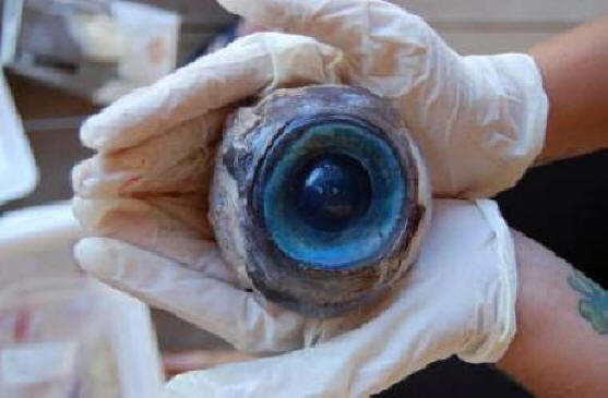 Muškarac šetajući plažom u Pompanu, Florida (SAD), otkrili džinovsko oko. Spasilačka služba koju je pozvao, u svoju prvo, od Komisije zatražio prisustvo morskih biologa štite ribu i divlje životinje na Floridi, ali i one koje pronađu ćorsokak. Sada će misteriozno oko biti usmereno na Floridu Institut za proučavanje riba i divljih životinja u Sankt Peterburgu. Eto ako treba čak i genetski test. Preliminarni vjeruje se da oko najvjerovatnije pripada ribama, možda rijetke i slabo proučavane dubokomorske vrste. Kako je završio obale na Floridi, naučnici s gubitkom mogu reći.