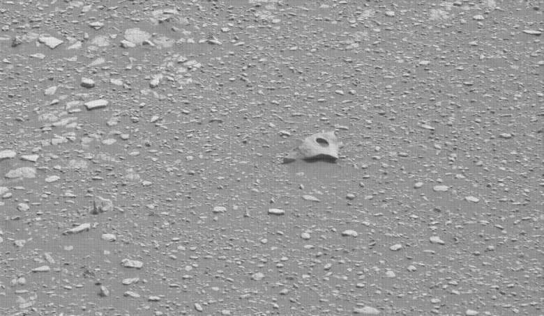 Na fotografiji koju je na početku ove slike poslao rover Curiosity mjeseci, virtualni arheolozi odmah su ispitali neobičan detalj, koja se ne usklađuje sa površinom Marsa na kojoj nalazi se.