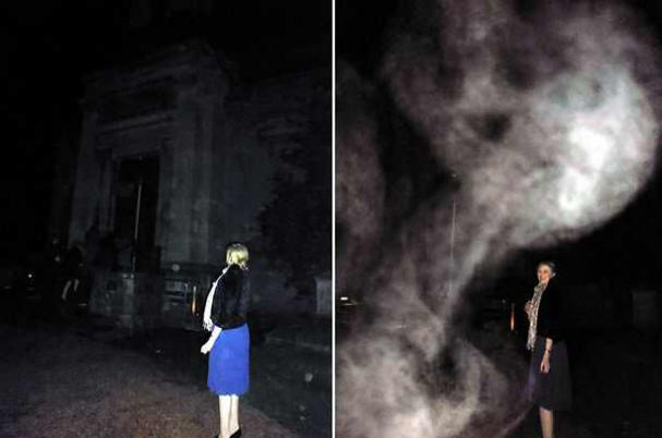 Supružnici iz grada Bristola, Velika Britanija, tvrde da su u prilikom fotografisanja na groblju slučajno su uhvatili diva duh kostura i navesti kao dokaz svojih riječi primljena slika.