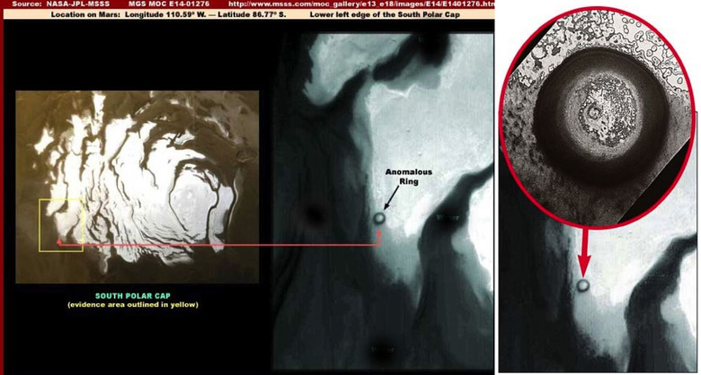 Orbitalna stanica NASA MRO (Mars Reconnaissance Orbiter) naučnicima i ufolozima predstavio još jednu zagonetku – fotografiju sa Južni pol Crvene planete, na kojem ogroman okrugla udubina.