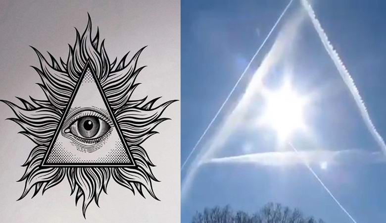 Čovjek je u tom trenutku iznenađujuće primijetio čak i iznad zemlje trokut sastavljen od kondenzacijskih tragova nadzvuka avioni. A u sredini je blistao ovaj fantastični trokut sunce …