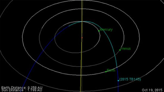 2015 TB145 Astroid brzina je trideset pet kilometara u sekundi proći će na minimalnoj udaljenosti od Zemlje za 15 sati 14 minuta GMT 31. oktobra 2015. Prema stručnjacima američka vazduhoplovna agencija nasa koja je otkrila ovaj svemirski objekt prije dvije sedmice, za Zemlju nije ne predstavlja nikakvu opasnost ali se potencijalno može promijeniti vašu putanju, oštro se približite našoj planeti i čak padajte Mesec.