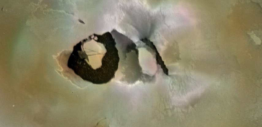 Vulkan Loki – ogromna šupljina dimenzija oko 200 kilometrima preko. Ovisno o gravitacijskim promjenama ohlađena kora površine jezera periodično se “previja” i Počinje erupcija vulkana.