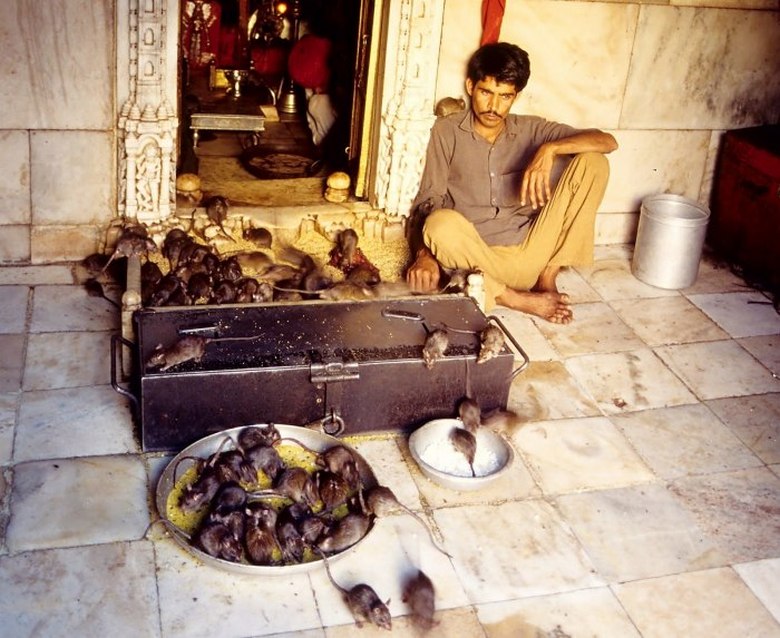 Hodočasnici se masovno slijevaju u hram Šri Karni Mata. Prvo sigurni su da nakon razgovora sa štakorima, jedu sa njima iz iste zdjele, nakon pijenja iz jedne kadice mlijeka ili obične vode, otapaju se mnoge bolesti. Drugo, vjeruju da će oni sigurno umrijeti ući u ovaj hram, gdje će također slobodno živjeti štakor kože do novog preporoda u čovjeku. Usput, kažu da je čak i ne baš religiozna osoba, jela i pila u ovoj svetinji mjesto sa štakorima postaje zdravije i još sretnije …