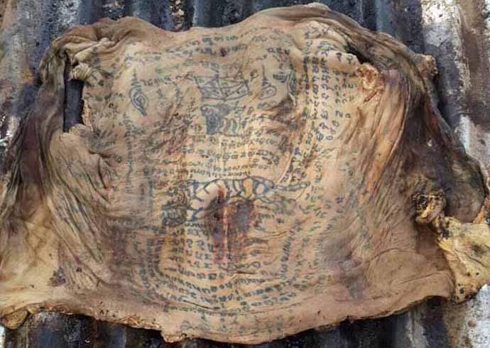 Radnici su otkrili mnoge tetovaže na koži pokojnika, koji predstavljaju nerazumljive natpise, crteže i crteže. Kako na isti se način pokazalo da su ostaci truli gotovo do kosti, međutim, koža je bila u odličnom stanju – nije pod utjecajem propadanja? Suptilni Tajlanđani uvjereni su da su tajanstvene tetovaže rukotvorina nekog čarobnjaka i služi za izradu koža je neranjiva na bilo kakva oštećenja, kao i na truljenje.