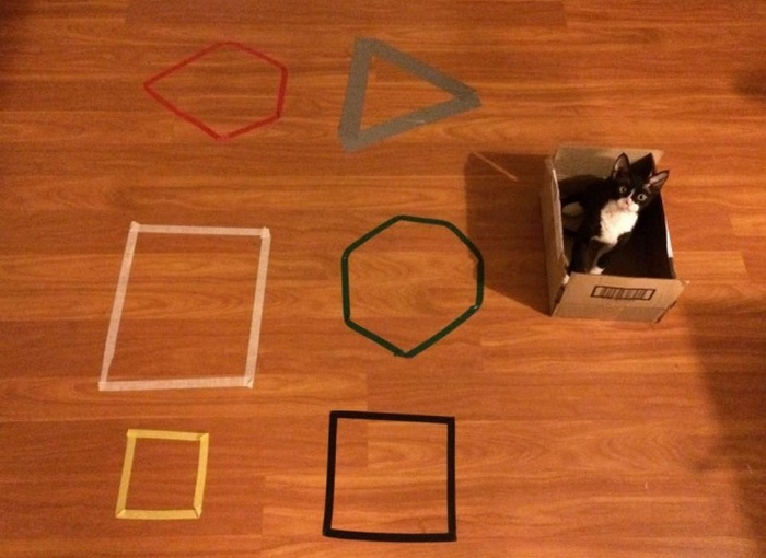 Jedan od korisnika izvora za zabavu Reddit je podijelio njihova zapažanja o domaćim mačkama. Ispada da ako na podu nacrtajte krug (trokut, kvadrat, peterokut i tako dalje dalje) primjenjujući, na primjer, traku za Scotch ili čak samo uzevši debelu žicu, konopac, mačka će sigurno htjeti sjediti unutra ovaj krug (pravougaonik, elipsa, romb).