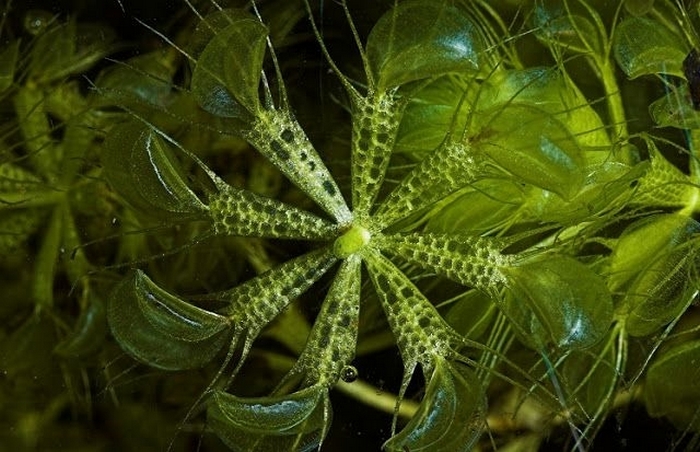 Ova biljka vodenog predatora sada je navedena u Crvenoj knjizi. Ne ima korijenje, on slobodno lebdi na površini vode. To čini se cvijet, zapravo osam reznica koje rastu iz jednostruke tačke i sastoji se od mnogo lišća. Svaka stabljika kruniše se tanjir sa osjetljivim čekinjama. Kada joj plijen se približava (mali rakovi, ličinke, insekti), čekinje razdražen – i sudoper se odmah slijeva. Varenje hrana može trajati i do tjedan dana, a nakon toga list umire.