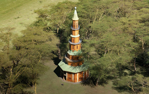 12. Hippo Point, Naivasha, Kenija Završeno 1993. godine, Hippo Point je savršeno odmorište svih luksuznih safarija šatori u nacionalnim parkovima Kenije. Ovo je kula u stilu pagode devet katova s pet luksuznih, vijaka stepenice i minareti za meditaciju sa zidovima obloženim Kenijski čempres. Okružen akacijama u prirodnom rezervatu koji postao dom 500 vrsta ptica i 1.100 vrsta životinja, kula je baza za “spor safari” gdje je također važno wellness iskustvo, poput krvavih igara. Zebre će učestvovati u jutarnjem trčanju, a žirafe mogu lutati po bazenu.
