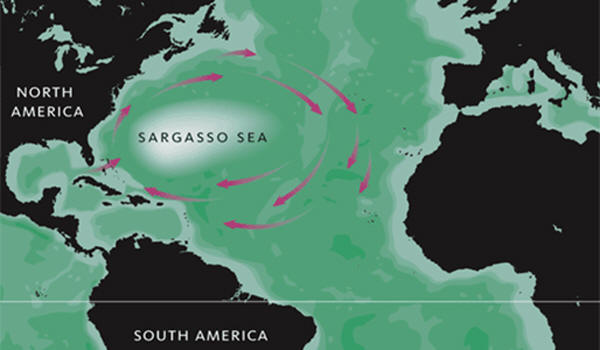 Pošto se ovo more nalazi na sredini sjevernog dijela Atlantski okean, to je jedino more koje nema ima svoje obale. Okruženo oceanskim strujama, Sargassovo more privlači smeće i obrastao algama. Zbog alge, akumulacije smeća i izolacija stvorena strujama, voda u moru je vrlo topla i mirna, uprkos činjenici da je more okružen promjenjivim i hladnim vodama oceana.