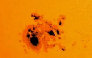 Sunčane pjege su tamna područja na površini tijela, ponekad posmatrano golim okom. Oni su mjesta izlaz u fotosferu moćnih magnetnih polja i njihovu temperaturu otprilike 1.500 stepeni niži od okolnih područja. Broj i veličina sunčanih pjega jedan je od glavnih pokazatelja zvijezda aktivnost.