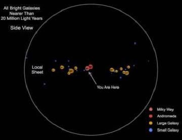 Aleksandar Berezin, čovječanstvo je i dalje nažalost površno njihovo znanje o svemiru. Odgovorite, pa gdje smo? In Mliječni put, obilna forma palačinki sa spiralom rukava, u kojima je bilo 100, ili 200, ili 300 milijardi zvijezda i još više planeta. Ali gdje se nalazi taj Mliječni put? Zajedno s obližnjom spiralnom maglom Andromeda (što je 2,5 miliona svjetlosnih godina od nas) Mliječni put je dio Lokalne grupe galaksije. Poslednji broj učesnika više od pedeset je usko povezan između sebe gravitaciono. Dužina Lokalne grupe prelazi 3 milion svjetlosnih godina, ali o “stanovništvu” izvan i najbližeg susjede naše Galaksije, još uvijek znamo vrlo malo.