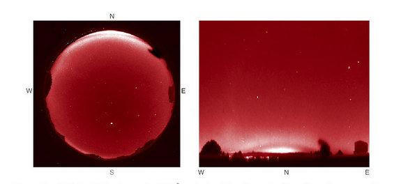 Kad visokoenergetski tokovi dođu, nabijene čestice Zemlje nakon sunčevog zračenja uzrokuju tzv geomagnetske oluje. Ovi događaji su poremećaji u magnetosferi, delovi zemljine atmosfere u kojima dominira magnetno polje planete. Najdramatičnije su posljedice ovih džinovskih oluja živopisne odgovarajuće regije Zemlje. Ali rezultat oluje izražene u drugim zadivljujućim posljedicama, na primjer, slabo blistav crveni luk visok u ionosferi. Električno je nabijeni dijelovi Zemljine atmosfere koji se protežu od 50 do 370 milja (od 85 do 600 km) iznad Zemlje. Lukovi emitiraju vrlo specifično talasne dužine crvene svetlosti, ali su suviše slabe da bi bile bilo je vidjeti golim okom. Pojavljuju se u nižim geografske širine, nasuprot aurorama, koje se obično primjećuju u veće geografske širine. U početku su naučnici smatrali da je prevelik svjetlosno zagađenje u Europi otežava vidjeti slabo crveni luk. Ali sada, nova opservatorija (ASIAGO) koja se nalazi na sjeveru Italija koristi kamere sa vrlo osjetljivim senzorima i riblje oko leće promatrati ove crvene lukove i slabašno aurore na većem dijelu kontinenta.