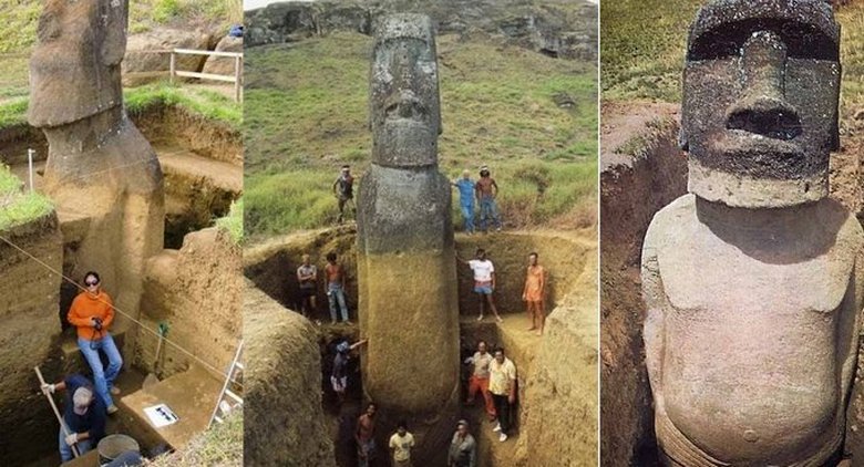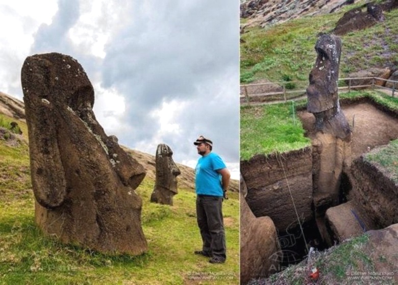 Tada su arheolozi odlučili iskopati statue – i pokazalo se da je to većina njih nisu samo glave, nego pune figure ukopane u zemlju (još jedna misterija). Istina joj naučnici su “brzo” nagađali, kažu, idoli su bombardovani vremenski vulkanski i sedimentni naslage. Usput, sa iskopavanje punih figura (pogledajte video) neumornih tragača starine su čak pronašle fragmente nekog mehanizma koji su tu smatrali su to uređajem za pomicanje kamena s više tona statue.