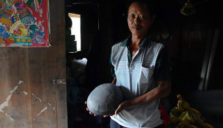 Meštani takođe veruju da ih zaokruženo kamenje donosi velika sreća. Konkretno, par koji ima takvo maskota, trebaju se roditi samo dječaci, što se smatra Kina je veliki blagoslov. Meštani su se već okupili u svojim domovima stotinjak takve artefakte. Prečnik svakog “jajeta” je od 30 do 60 centimetara. Šujovi stoje u redu za kamenje i čekaju mnogo godina, sve dok “zrela jaja” ne ispadnu iz stijene. Izvještavaju artefakte mogu imati žutu, crnu, mornarsko plavu, smeđu, bordo ili siva boja. Od čega ovisi niko nije u mogućnosti odrediti.