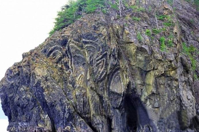 Na ruskom ostrvu Feklistov, koje je dio Shantarsky arhipelaga otkrivena je neobična stijena. Nekoliko ih je primijetilo prije nekoliko dana domaći turisti koji putuju ovdje s ciljem opustite se i uživajte u prirodi. Kada je grupa plivala do otoka, jedan od putnika neočekivano je pokazao prema obalnoj stijena na kojoj se misteriozno razvio tajanstveni ukras.