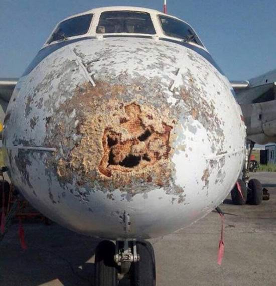 Tokom leta je pramca aviona turboprop An-24 je bilo kao da ga je neko nagrizao ili izložio nevjerovatno jake kiseline. Na brodu su bili zrakoplovi nekoliko članova posade i više od trideset putnika. Srećom nijedan od njih nije ozlijeđen.