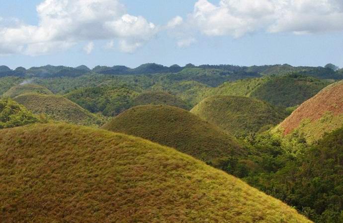 Brda čokolade su nevjerojatna geološka formacija koja se nalazi na filipinskom ostrvu Bohol. U 50. godini kvadratnih kilometara nalaze se brojna brda tačan broj kojih niko ne zna. Prema različitim izvorima, broj ovih visina je od 1260 do 1776 komada. In vruće sezone, trava na njima mijenja boju iz zelene u čokoladno smeđe, pa je i ovo područje dobilo svoje “slatko” ime.