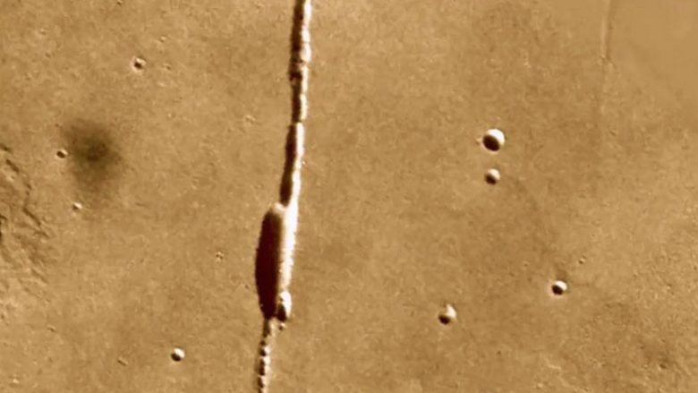 Na Google Marsu lako možete pronaći fotografiju, koju je napravio NASA-in orbiter oko 2010 (njegove koordinate su 23.241966 °, -92.657607 °). Fotografija odmah privlači pažnju i postavlja prirodno pitanje – šta je to?