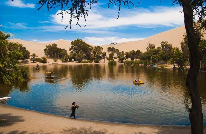 Prekrasno rajsko ostrvo do pustinje omogućava vam da se okupate jezero ili plivati na njemu u čamcima. U blizini je Huacachin dine visoke preko sto pedeset metara, pogodno za vožnja pješčanicama i hodnicima na sve kotače. Uveče putnici obično se penju na pučine brda pijeska da bi ih vidjeli sjedenje, vatreni zalazak sunca, a potom svjetla grada. Ovdje noću možeš divite se zvjezdanom nebu ili šetajte osvetljenim kružnim putevima selo.