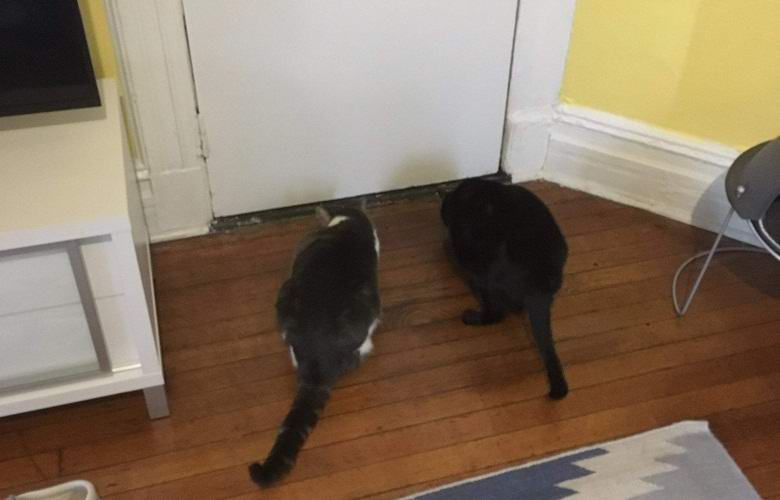 Dvije mačke koje žive s Adamom počele su se jako ponašati čudno. Svake ponoći životinje se približavaju ulaznim vratima i pogledaj je s oprezom, kao da očekuje nekoga neželjena poseta. New Yorker se u to vrijeme više puta obraćao ulaza i pogledao kroz rupu. Jednom mu se učinilo da je tako napolju, kraj drvene ograde, klizila je sjena. Bojeći se otvaranja, vlasnik stana fotografirao je ulaz kroz rupu na kameri pametnog telefona. Prema njemu u slici zarobljena je suptilna tamna izmaglica.