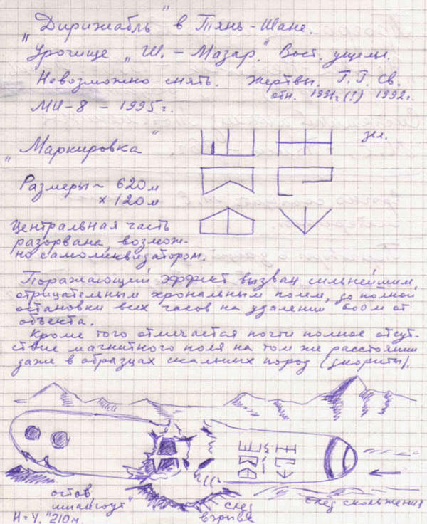 U septembru 1991. godine, u Bishkek ogranku SAKKUFON (Srednjoazijska i kazahstanska komisija za ufološke nauke) stigle su informacije da je na planinama istočno od Prhevalska na samom srušila se granica s Kinom u traktu Shaitan-Mazar NLO. Požureno okupljena ekspedicija krenula je u potragu za mjestom katastrofe, ali zbog obilnih ranih snježnih padavina nije bilo moguće ući u trakt. Kroz 15 dana se grupa vratila.