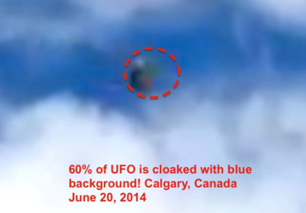 Ovaj video snimak je snimljen 20. juna u Calgaryu u Kanadi. Mala Kugla NLO-a u boji čelika lebdi u nebu iznad kuće. Radeći to, pogađajući pozadinu neba, mijenja se, djelomično maskirajući. Izviđač?