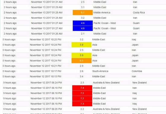 Večeras su bila tri velika zemljotresa od 6,6 do 7,5 bodovi po Richterovoj skali – na granici Iraka i Irana, uz obalu Japan i Republika Kostarika (Centralna Amerika). Ozbiljno Moram reći, potres Zemlje, međutim, kad razmislite kako je naša planeta tresu se u posljednje vrijeme, ništa posebno ako ne za neke “ali” …