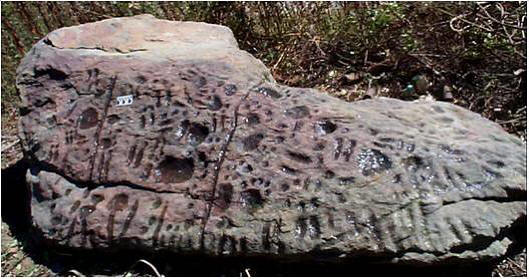 Na primer, kamen pronađen u Severnoj Karolini, na mestu stanište Cherokee Indijanaca koje je urezalo „tragove“ medveda i jelen: