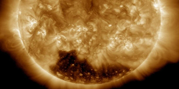 Foto: NASA stručnjaci NASA otkrivajući ogromno tamno područje u solarnoj koroni. Snimka Sunce, koje pokazuje ogromnu koronalnu rupu, objavljeno je na službenom računu američkog svemirskog odjela u usluga mikroblogova Twitter. Tamno područje se nalazi u tom području zvijezde južnog pola. Razlog pojave koronalnih rupa na Sunce ostaje misterija naučnicima. Međutim, poznato je da mogu promatrane tokom godina, dostižući tako gigantske razmjere. By Prema stručnjacima, solarni vjetar struji iz koronalnih rupa su glavni uzrok pojave na našoj planeti magnetnog oluje, kao i pojave sjevernih svjetala.