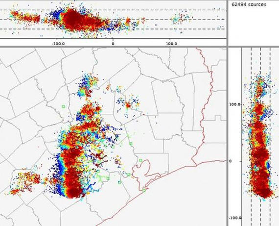 Da biste ocijenili događaj, možete vidjeti satnu kartu. Ovdje su prikazani udari groma, prema modelu – oblak-zemlja i oblak- oblak udaljen 100 milja od Houstona.